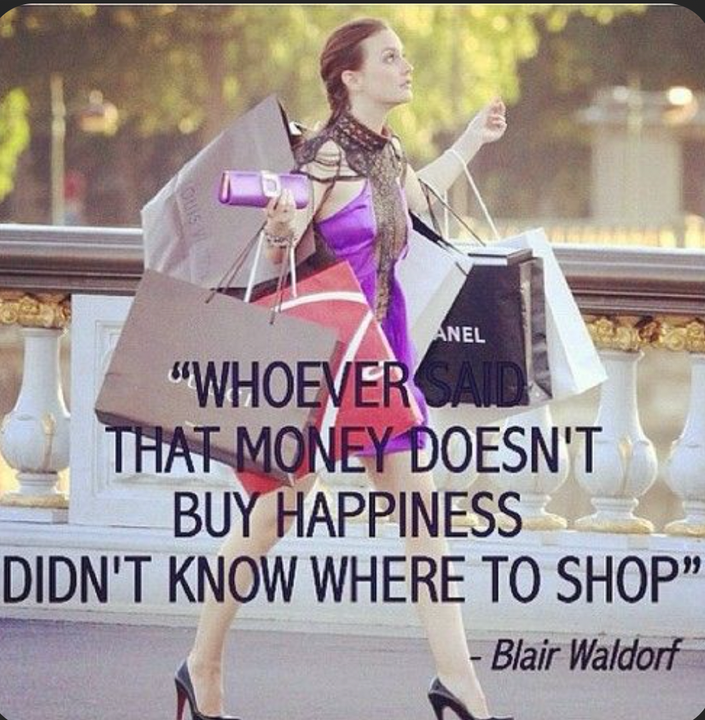Whoever said that money doesn't buy happiness didn't know where to shop. ~Blair Waldorf